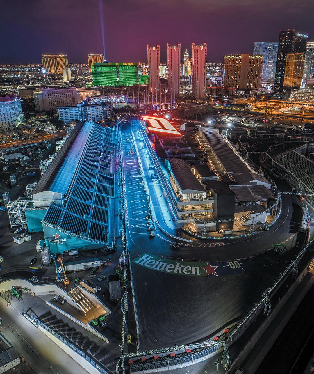 At every grand prix, the most exclusive hangs happen in the Paddock Building. This year, two experiences capitalize on one of the things Vegas does best: nightlife. From Groot Hospitality, Papi Steak Las Vegas brings Papi Steak Garage to the F1 Trackside garages, which is one of the most luxurious packages for 2024; expect VIP moments throughout the weekend from some of Papi’s celebrity guests. Dine next to the pit lane on Alaskan king crab legs, Golden Ossetra caviar, split Maine lobster tails, prime rib roast and Australian pure breed New York strip loin carving stations. The sought-after F1 Paddock Pass delivers behind-thescenes access to the working areas for drivers, team principals, sta and media, meet-and-greets with F1 legends, a pit lane walk, truck tour, transportation and a dedicated service manager. Paddock Club Rooftop access gives a 360-degree view of the track. As part of the Paddock Club Rooftop, fans can access LIV on the Grid, an open-air nightclub with the A-list from LIV’s nightlife and daytime experiences.