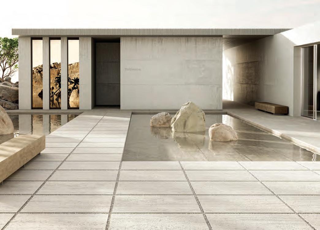 The Outdoor Edition offers 20mm-thick porcelain tiles crafted for outdoor use with hyper-realistic stone textures. Using advanced Dinamika technology, these tiles feature deep, authentic vein patterns, delivering a three-dimensional look and feel that closely mimics natural materials.