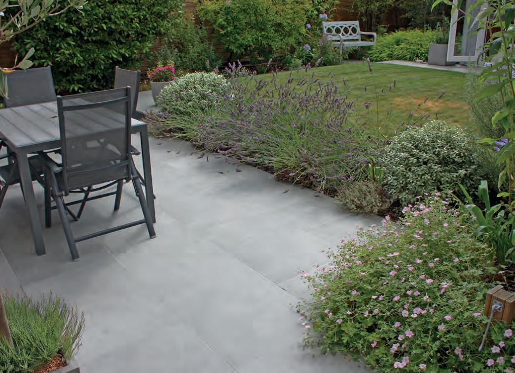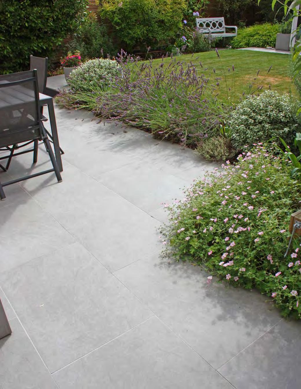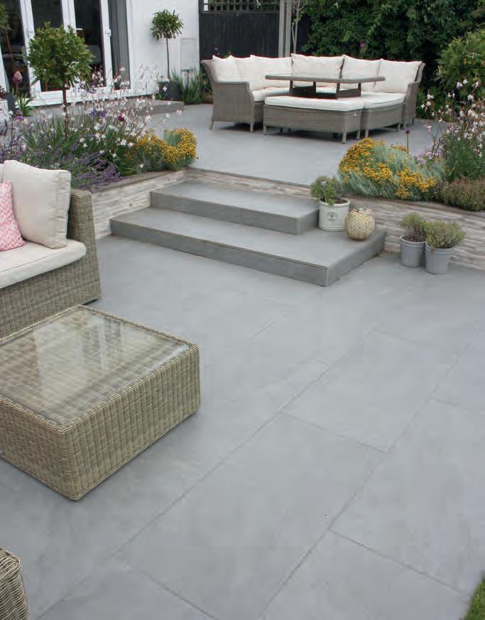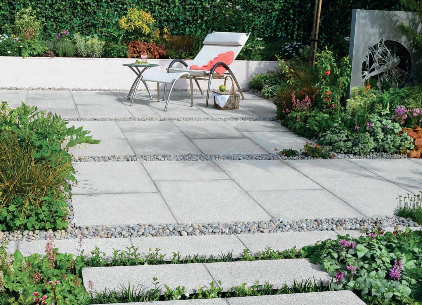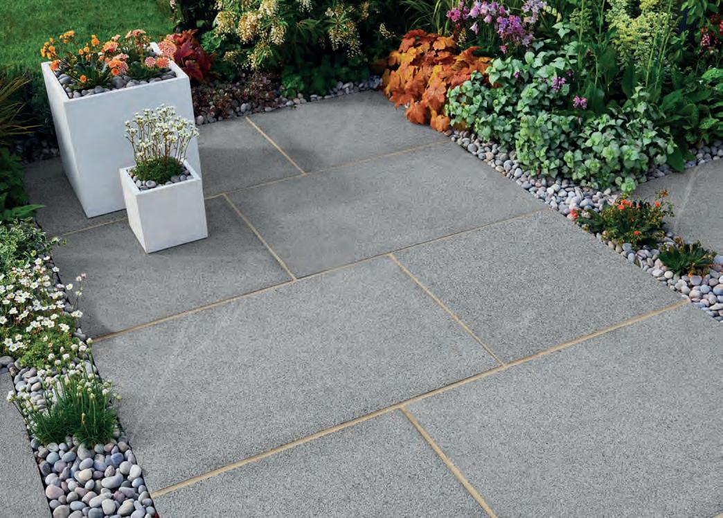 The sawn, straight edges create clean lines for a contemporary look, while the colour choices - classic silverygrey Ice Granite and the deeper-toned Solstice Granite - add versatile colour options.