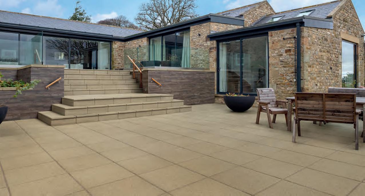 Our distinctive Fusion Premium paving retains the traditional riven surface of sandstone, but has straight-cut edges. This gives it a unique blend of classic and contemporary style.