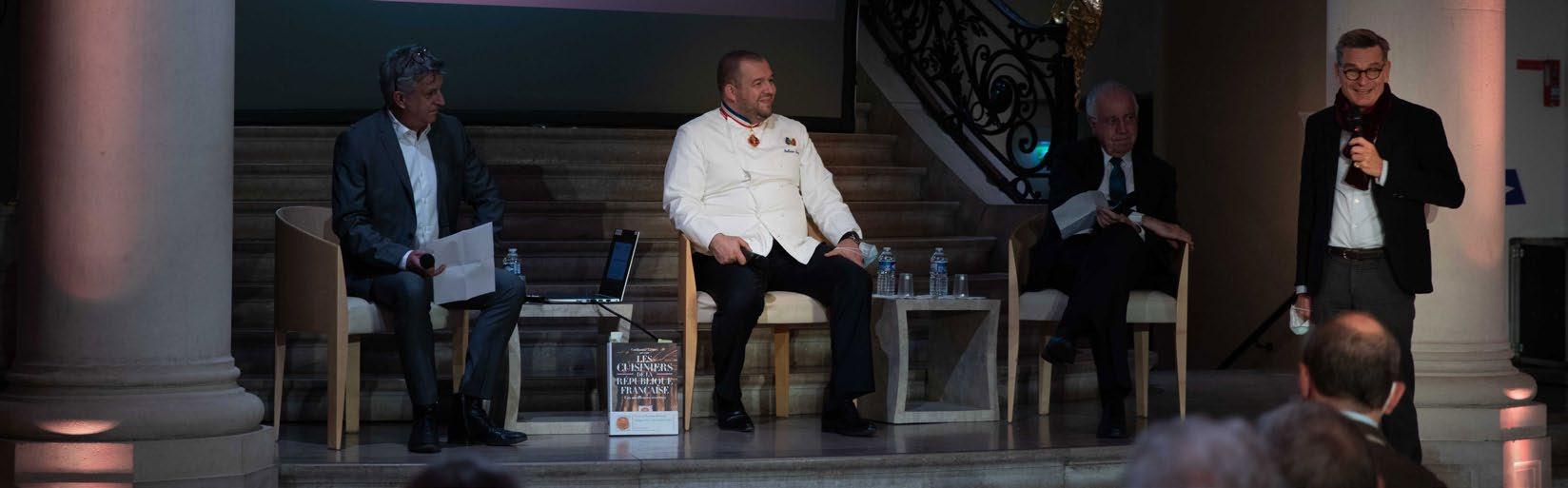 Gilles Billen, directeur de recherche émérite au CNRS en biogéochimie, Emmanuelle Cronier, maîtresse de conférences en histoire contemporaine, Université de Picardie Jules Verne, Stéphane Layani, président-directeur général du Marché International de Rungis, Bruno Marcillaud, Maire de Rungis, Président du syndicat Cité de la gastronomie Paris-Rungis.