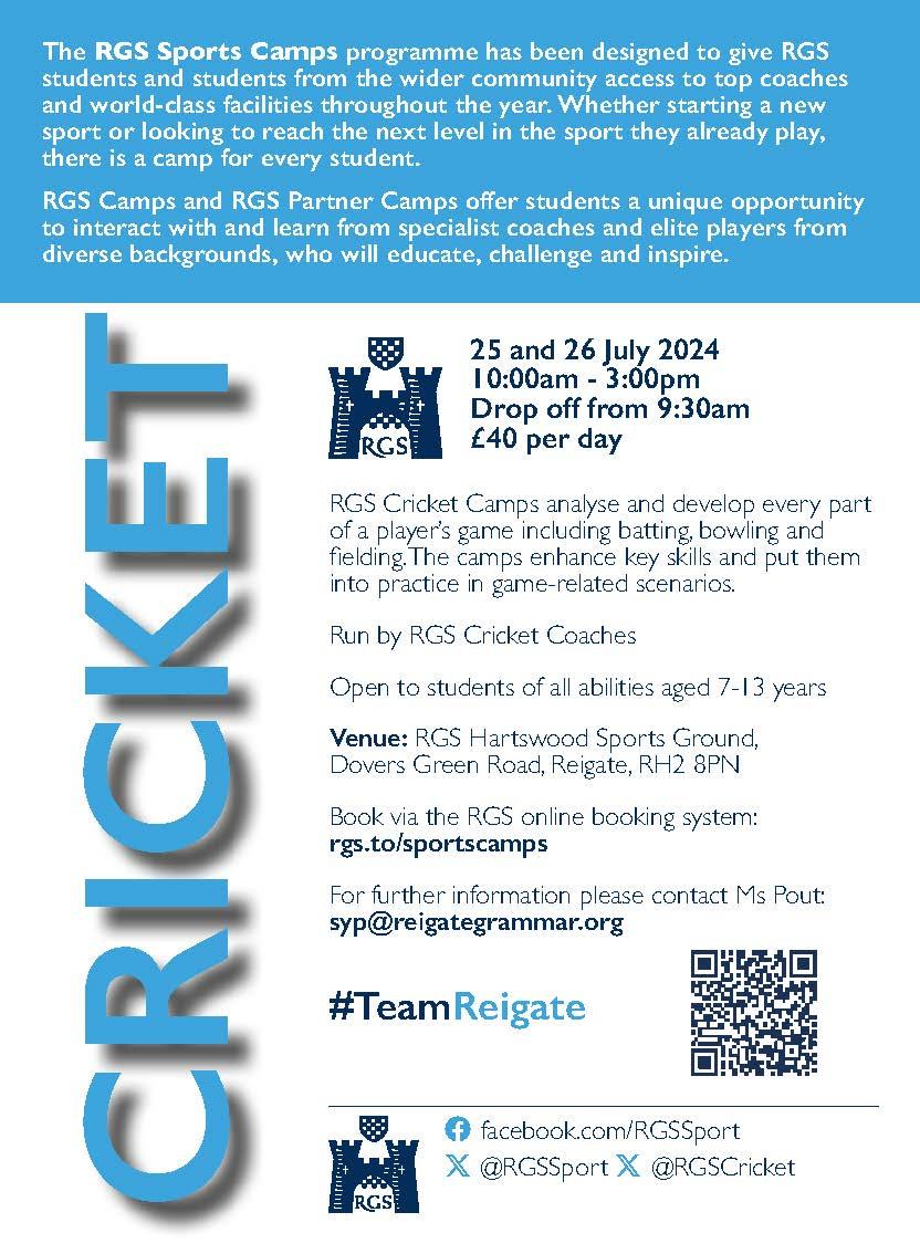 facebook.com/RGSSport @RGSCricket @RGSSport