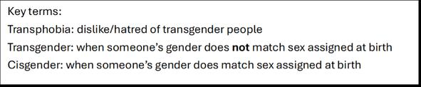 Transphobia is a major problem that affects many people in the UK. Last year’s Supreme Court ruling on the definition of a woman, and the following interim guidance on single-sex spaces, has made the issue far more prevalent I believe that we need to work together to become more accepting and to help those impacted I (and the teenager I interviewed) believe that it would be incredibly beneficial to have more widespread education on the topic Admittedly, this may increase transphobic comments, as I have seen with previous talks on LGBTQ+ rights, but it would be a start. Individually, I think you should make sure you use the right pronouns and be respectful of others’ identities. You could support a transgender friend by doing research to gain a better understanding; you can challenge misinformed biases that you hear and check up on them I would really recommend the website TransActual for research They have so much information and multiple studies which are very much worth a read. In the end, we all just need to support each other as humans and be kind to each other.