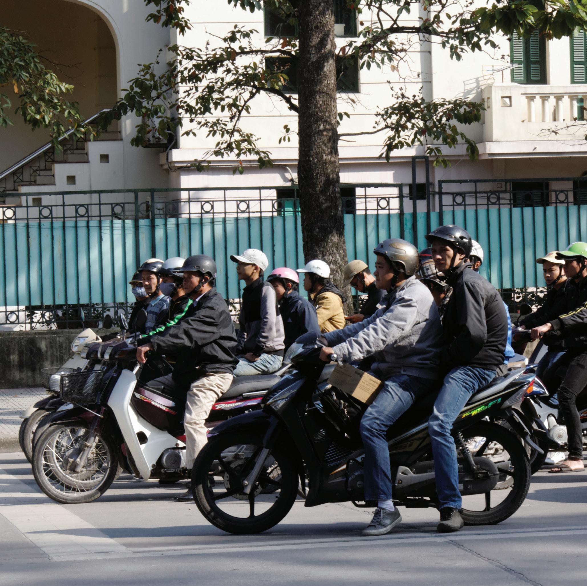 The ‘xe om’ (hug a rider) motorbike taxis are still in existence, and you will have to negotiate the price. However, many people use ride-hailing apps like Grab, Gojek, & Be for clear pricing, including paying by card. Weaving amongst the other tra c can be exhilarating (and dangerous) but speeds are generally low and all other road users are familiar with close proximity driving/riding.