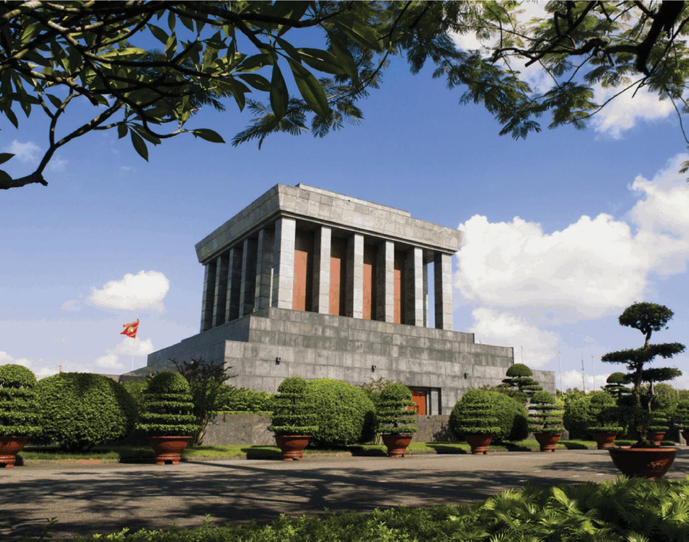 Ho Chi Minh Mausoleum Complex is a tra c-free area with parks, pagodas, memorials, monuments and museums located in Ba Dinh Square where the Vietnamese leader read the Declaration of Independence on September 2nd 1945 establishing the Democratic Republic of Vietnam. The imposing structure is modelled on Lenin’s tomb in Moscow.