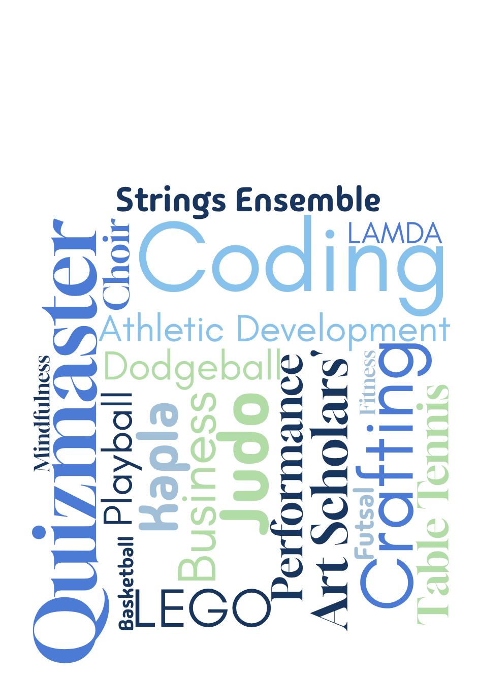 • Our club programme evolves termly; club availability may vary and not every club listed will be offered each term.