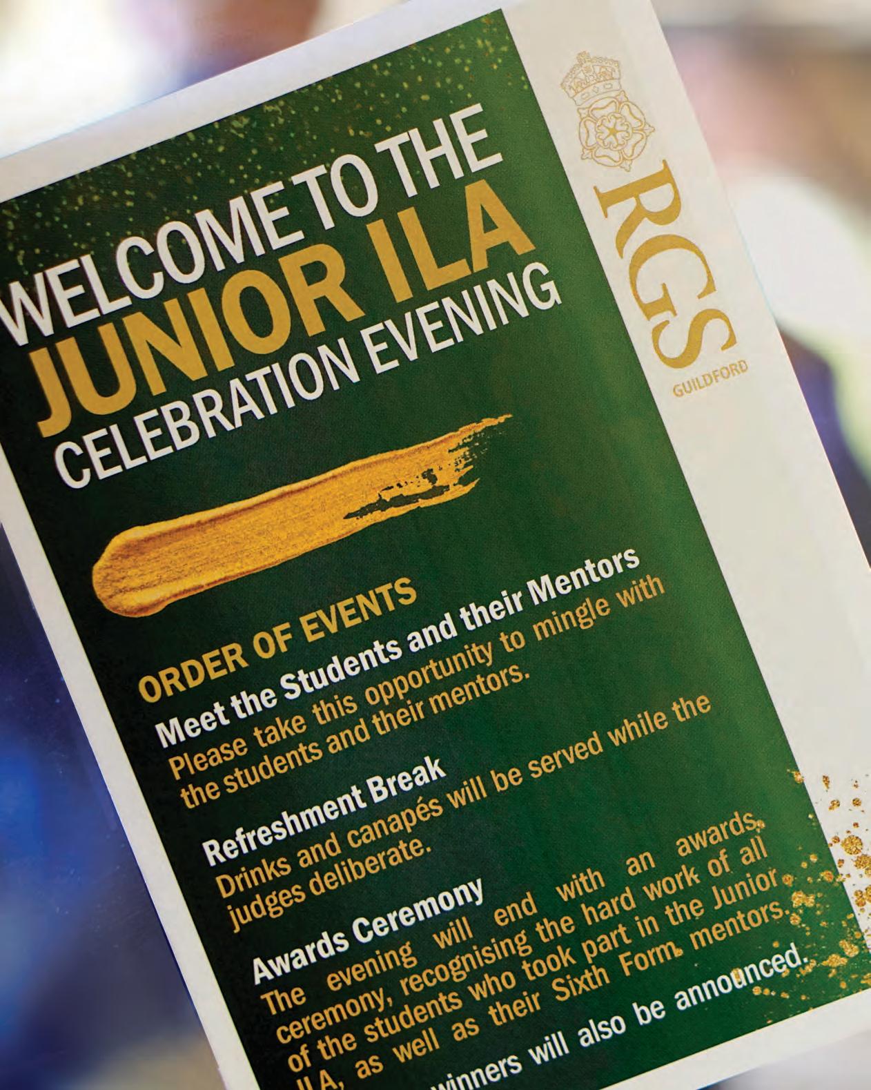 This year, for the first time, we were very excited to launch the Junior ILA and so to extend this opportunity to members of the Third and Fourth Form. Initial interest far surpassed our expectations, with almost 80 students signing up. In total, 40 students successfully submitted finished projects, representing remarkable individual and collective achievements. All 40 of these students were invited to share their projects with a guest list of staff, parents and fellow students at the Junior ILA Celebration Evening, culminating in the presentation of the inaugural Junior ILA awards.