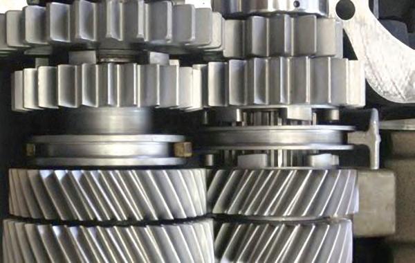 Figure 2: The difference between helical/synchromesh (bottom) and straight cut gears (top).
