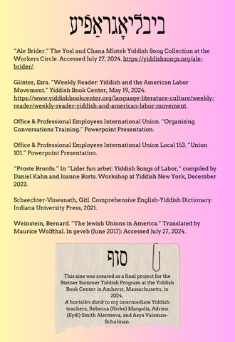 This zine was created as a final project for the Steiner Summer Yiddish Program at the Yiddish Book Center in Amherst, Massachusetts, in 2024.