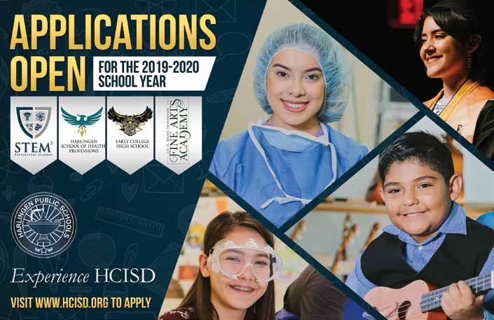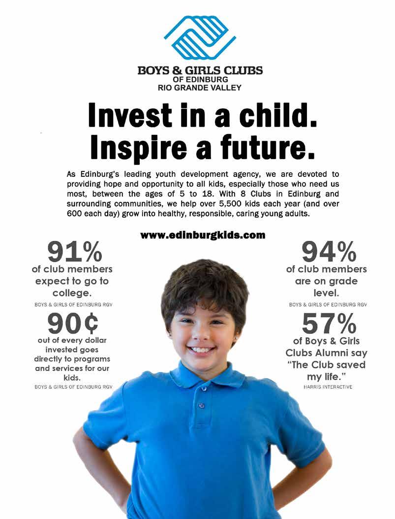 The opinions and views expressed in the magazine don’t necessarily reflect those of our advertisers or collaborators. RGVision magazine is published bi-monthly and circulates 12,000 copies across the Rio Grande Valley in 420 locations with a direct mail distribution to major hospitals and Superintendents within Region 1. The RGVision office is located at 801 N. Bryan Road, Mission, TX 78572.