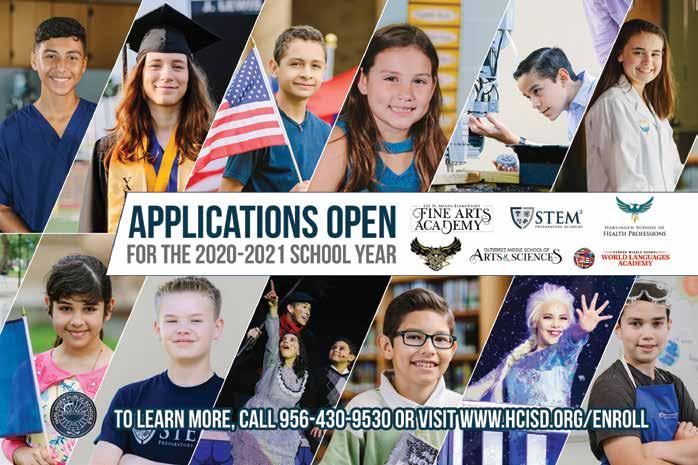 Copyright by RGVision Publications Inc. All rights reserved. Reproduction without expressed written permission of the publisher is prohibited. The opinions and views expressed in the magazine don’t necessarily reflect those of our advertisers or collaborators. RGVision magazine is published bi-monthly and circulates 12,000 copies across the Rio Grande Valley in 450 locations with a direct mail distribution to major hospitals and Superintendents within Region 1. The RGVision office is located at 801 N. Bryan Road, Mission, TX 78572.