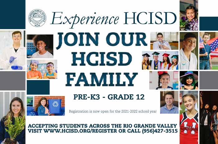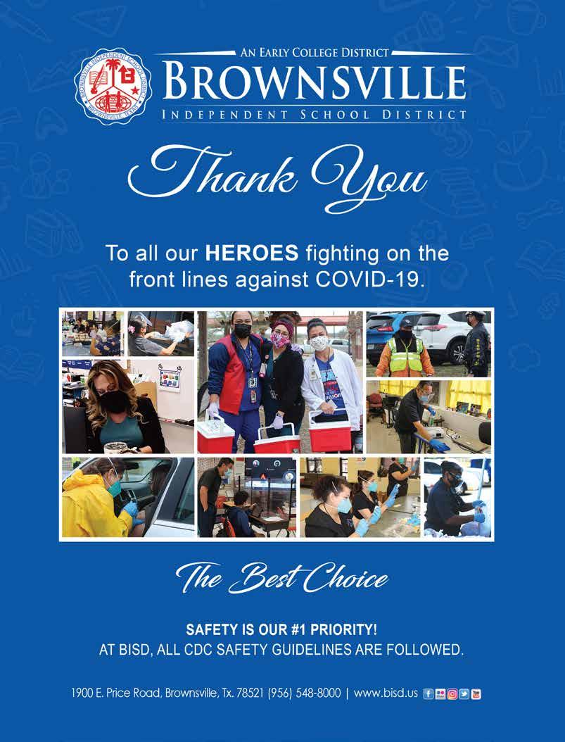 Copyright by RGVision Publications Inc. All rights reserved. Reproduction without expressed written permission of the publisher is prohibited. The opinions and views expressed in the magazine don’t necessarily reflect those of our advertisers or collaborators. RGVision magazine is published bi-monthly and circulates 12,000 copies across the Rio Grande Valley in 450 locations with a direct mail distribution to major hospitals and Superintendents within Region 1. The RGVision office is located at 801 N. Bryan Road, Mission, TX 78572.
