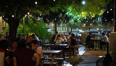 DISTINGUISHING CHARACTERISTIC: Picnic tables spaced to accommodate social distancing — and fairytale-like string lights illuminating a starry night. A variety of food to be tried. They serve both food and beer.