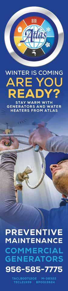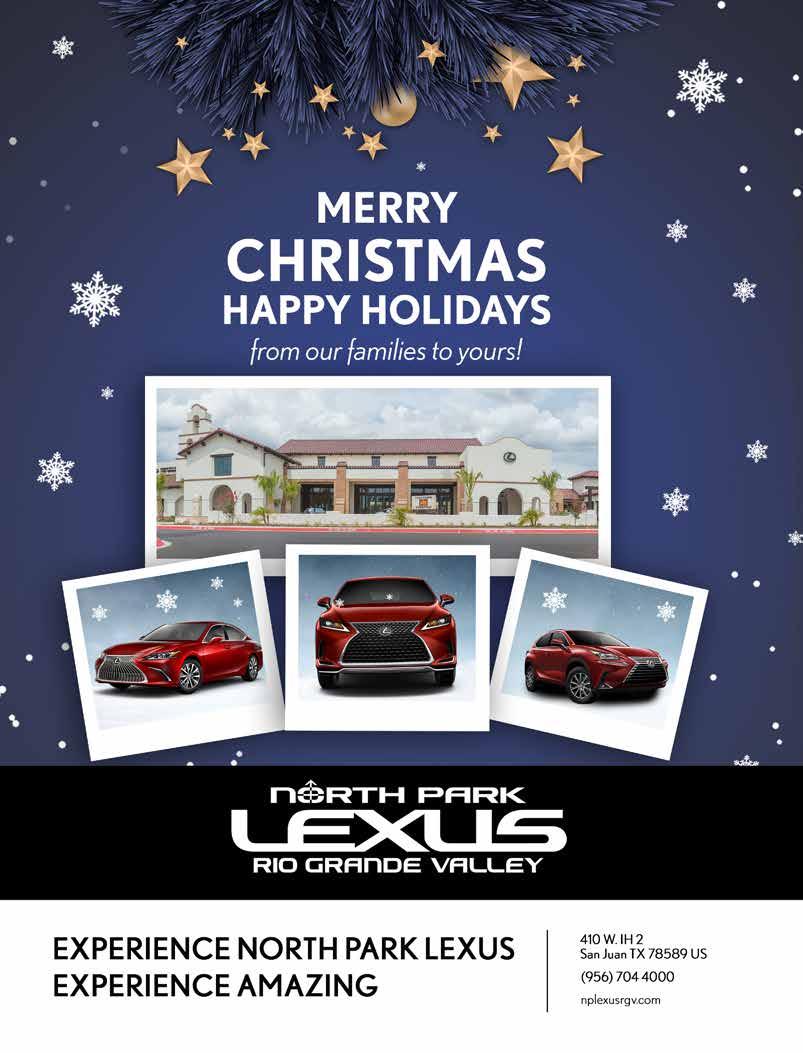 Copyright by RGVision Publications Inc. All rights reserved. Reproduction without expressed written permission of the publisher is prohibited. The opinions and views expressed in the magazine don’t necessarily reflect those of our advertisers or collaborators. RGVision magazine is published bi-monthly and circulates 12,000 copies across the Rio Grande Valley in 450 locations with a direct mail distribution to major hospitals and Superintendents within Region 1. The RGVision office is located at 801 N. Bryan Road, Mission, TX 78572.