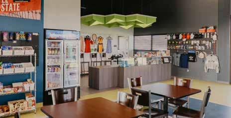 The new pro shop includes apparel, accessories, rackets, snacks, and drinks for players and visitors. The center's staff also has a fully equipped training room for school tennis games and state tournaments.