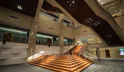 The Convention Center, designed to be muftipurpose, features a 60,000-square-foot, column-free exhibit hall, a grand ballroom, two boardrooms, and up to 20 breakout rooms for meetings and smaller