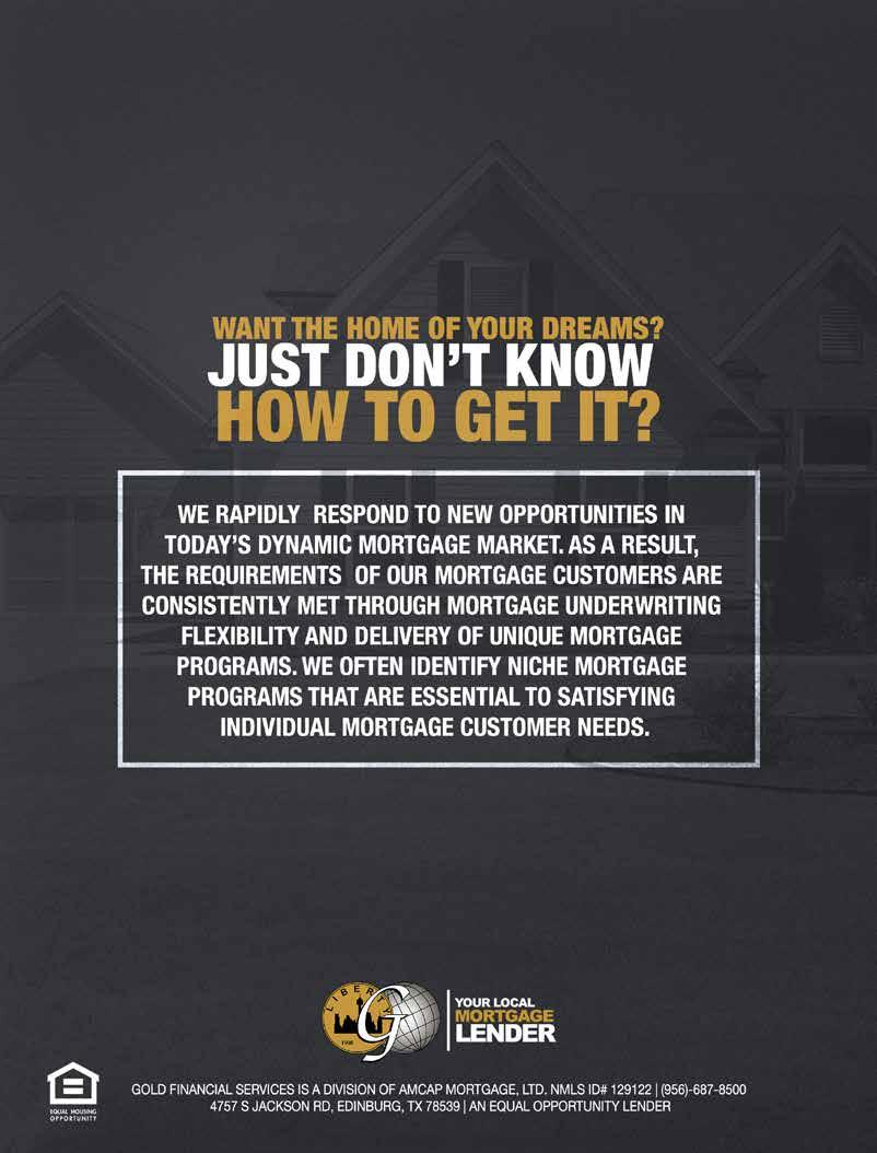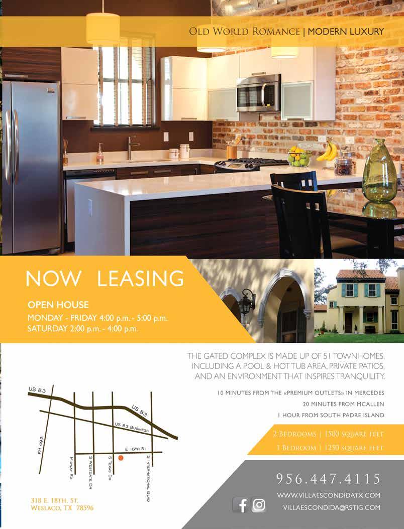 Copyright by RGVision Publications Inc. All rights reserved. Reproduction without expressed written permission of the publisher is prohibited. The opinions and views expressed in the magazine don’t necessarily reflect those of our advertisers or collaborators. RGVision magazine is published bi-monthly and circulates 12,000 copies across the Rio Grande Valley in 420 locations with a direct mail distribution to major hospitals and Superintendents within Region 1. The RGVision office is located at 801 N Bryan Rd, Mission, TX 78572.