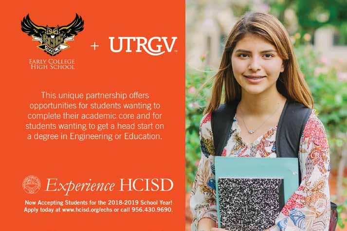 Copyright by RGVision Publications Inc. All rights reserved. Reproduction without expressed written permission of the publisher is prohibited. The opinions and views expressed in the magazine don’t necessarily reflect those of our advertisers or collaborators. RGVision magazine is published bi-monthly and circulates 12,000 copies across the Rio Grande Valley in 420 locations with a direct mail distribution to major hospitals and Superintendents within Region 1. The RGVision office is located at 801 N Bryan Rd, Mission, TX 78572.