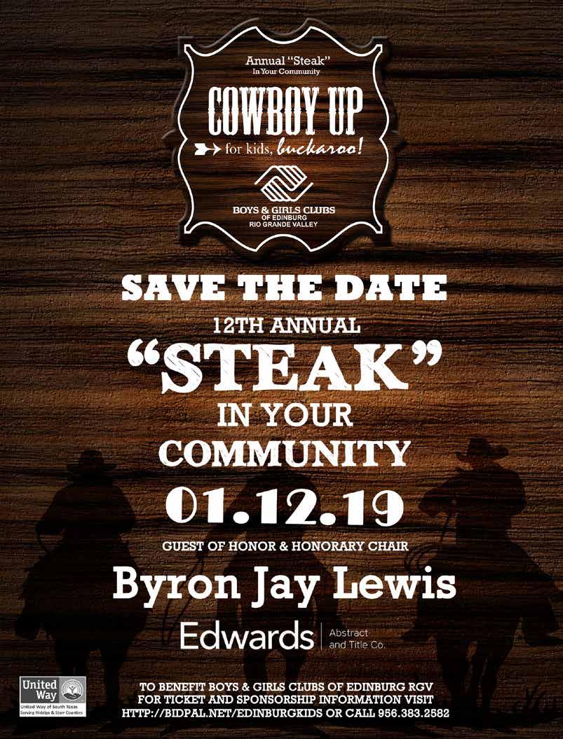 Copyright by RGVision Publications Inc. All rights reserved. Reproduction without expressed written permission of the publisher is prohibited. The opinions and views expressed in the magazine don’t necessarily reflect those of our advertisers or collaborators. RGVision magazine is published bi-monthly and circulates 12,000 copies across the Rio Grande Valley in 420 locations with a direct mail distribution to major hospitals and Superintendents within Region 1. The RGVision office is located at 801 N. Bryan Road, Mission, TX 78572.