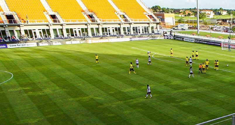 Yvette, mother of Jamaican defender Dominique Bondflasza, donned a distinctive yellow, green, and black jersey Oct. 5 to cheer on the team. She came from California to watch the tournament, and admired H-E-B Park.
