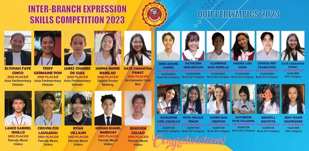 This year ' s interbranch expression skills consisted of variouscompetitionsincluding Asian Parliamentary Debate, Archimedes Quiz Bee Challenge, Photojournalism, Digital Poster Making, Parody Music Video, and Desktop Publishing cont on page 3