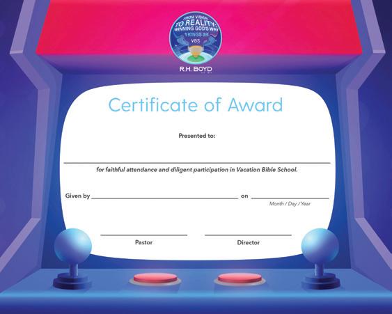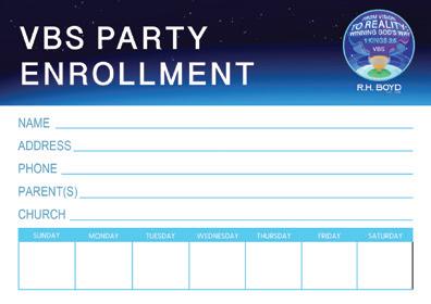 Box Includes: VBS Catalog/Order Form; VBS at Home Guide; Accessibility Recommendations Flyer; Director’s Manual; Adult Student and Teacher Manuals; Intermediate Student and Teacher Manuals; Junior Student and Teacher Manuals; Preschool Student and Teacher Manuals; Primary Student and Teacher Manuals; Record Book; Songbook; Music CD; VBS Announcement Flyer, Poster, and Door Hanger; Postcard; Attendance Chart; Certificate of Appreciation; Certificate of Award; Five Inspirational Cards; Five Inspirational Posters; Enrollment Card; DIY Crafts and Activity Guide; VBS Character Guide; One Bookmark; Matching Game; Name Tag; Armband; Three Balloons; VBS Logo Stickers and Button;