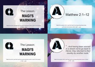 Day 4: Magi’s warning (Key Verses: Matthew 2:1–12) • Message: Warning signs are all around us and they are there for our own protection. Be sure to always stop and listen, and take heed, even when you don’t understand why. It is for your own good. The Magi listened because it was not only for their good, but for the good of everyone.