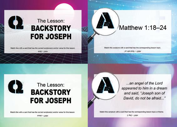 Day 3: Backstory for Joseph - Mary’s husband (Key Verse: Matthew 1:18–24) • Message: We must learn how to trust God’s guidance. God has called each of for His great purpose. Trusting and obeying Him will help us to fulfill His purpose. Learn to be like Joseph and trust God’s guidance even when you don’t know direction He’s taking you.