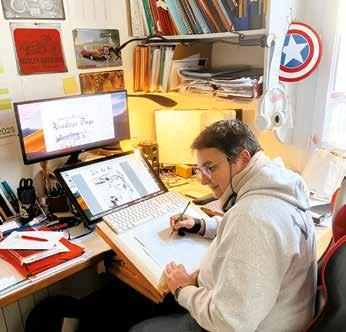 Celine Assimeau travaille dans son atelier à ses projets et en particulier sa future bande dessinée.
