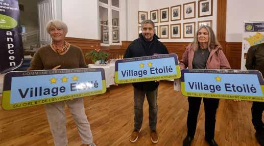 Gisèle Vergnon (3*), Gérard Juin (2*) et Lina Besnier (1*) arborent fièrement leurs panneaux « Village étoilé ».