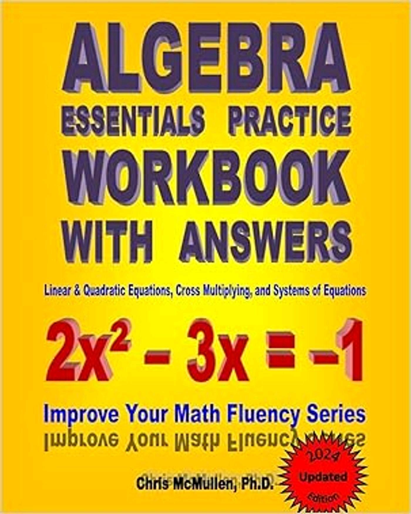 Access the digital version of 'Algebra Essentials Practice Workbook with Answers: Linear & Quadratic Equations, Cross Multiplying, and Systems of Equations: Improve Your Math Fluency Series' by Chris McMullen.