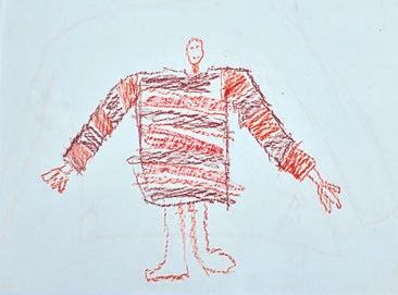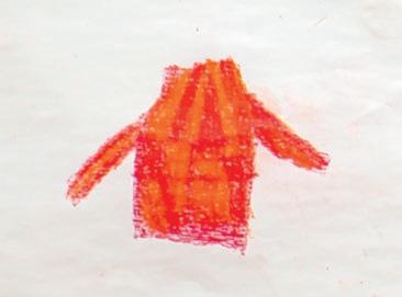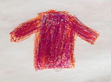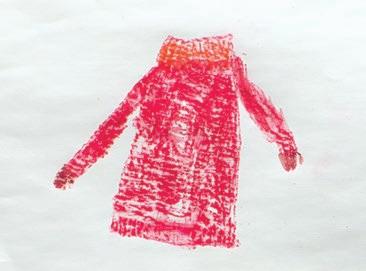 Sie macht sich auf die Suche nach Spuren von Toni, nach roten Details, nach Mädchen und Frauen und einem roten Pullover. So einen, wie sie ihn gemalt hat. Sie findet Fotos von Bäumen mit roten Blättern, von Kindern, die mit einem roten Ball spielen und sogar eines, auf dem im Hintergrund ein rotes Auto zu sehen ist. Nur eine Person in rotem Pullover sucht sie vergeblich. So gerne hätte sie Toni in ihrem Pulli gefunden. In dem Pulli, der etwas zu groß und schon ein wenig ausgebeult ist, der sein leuchtendes Rot aber nie verloren hat. In dem Pulli, den sie in der Schule gemalt hat. Gestern in der Schule haben sie erzählt, dass der rote Pullover Toni an ihre Mutter erinnerte. Das Mädchen kann das nachvollziehen. Zwar ist es kein Pulli, sondern ein Schal und auch nicht ihre Mutter, sondern ihr Opa, an den er sie erinnert. Nachdem er gestorben ist, hat sie den grünbraunen Seidenschal aus seinem