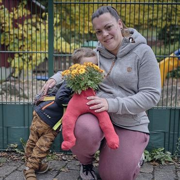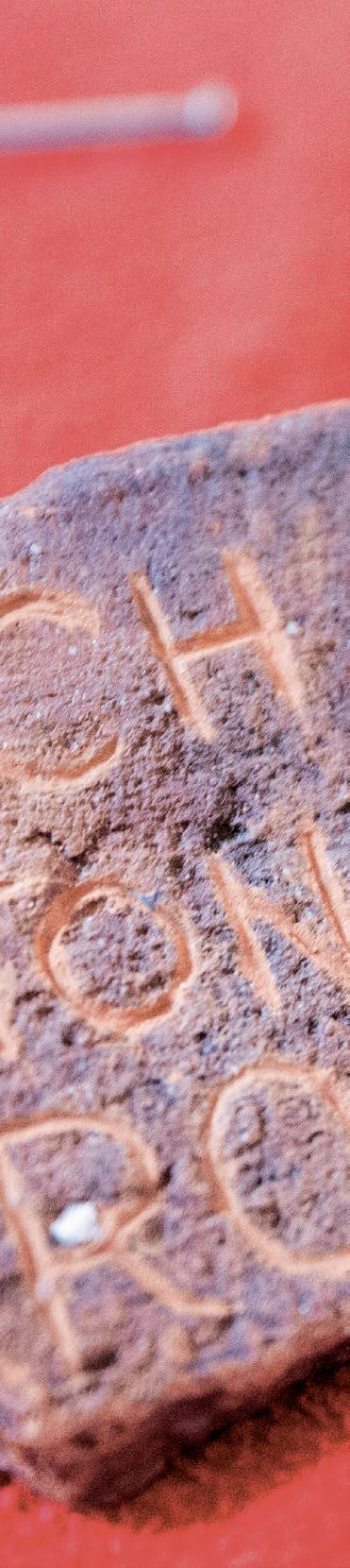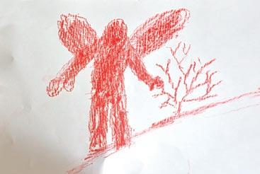 Außerdem braucht es viel Kraft, bis ihr Name wirklich eingraviert ist und nicht beim Darüberwischen mit der Hand direkt ganz verblasst. Sie umwickelt die Scherbe mit einem roten Faden. Ihren Namen erkennt man jetzt nur noch bruchstückhaft, genauso wie auf der Fahne im Wind vor dem Pfarrhaus. Ihre Namensscherbe soll gleich im Garten zu den anderen an einen Baum gehängt werden.
