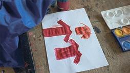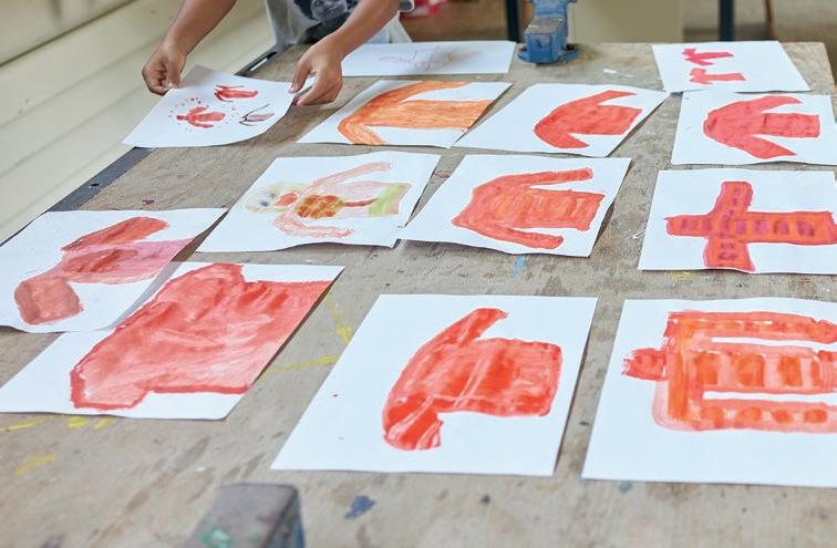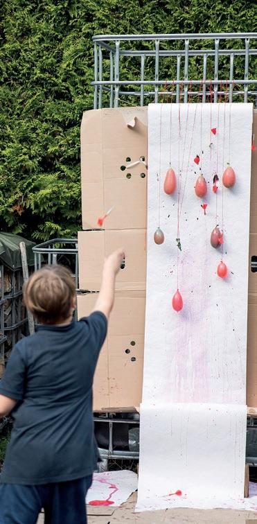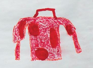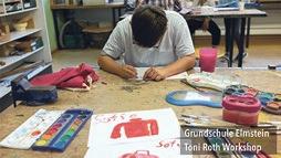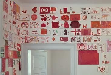 Toni Roths frühe Arbeit wurde in der Grundschule in Elmstein entworfen. Dort haben 70 Schüler*innen rote Pullis gemalt, um Tonis frühen Verlust der Mutter in Bildern zu verarbeiten. Viele Kinder sind später mit ihren Großmüttern in die Ausstellung gekommen, um ihr eigenes und Tonis Werk zu bewundern.