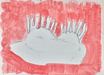 Wasserfarbe auf Papier, Wachskreide auf Papier, Mischtechnik auf Papier