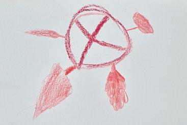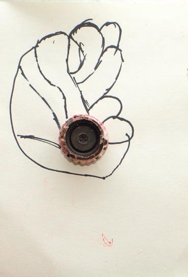Wachskreide auf Papier, Wasserfarbe auf Papier, Wachskreide und Porzellanklemme auf Papier, Foto auf Papier