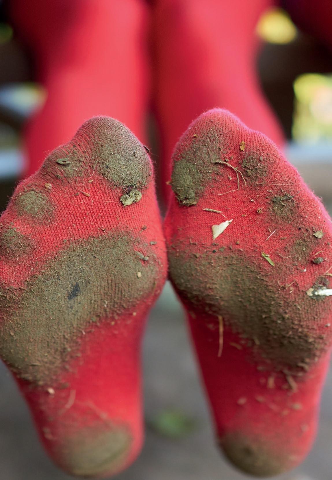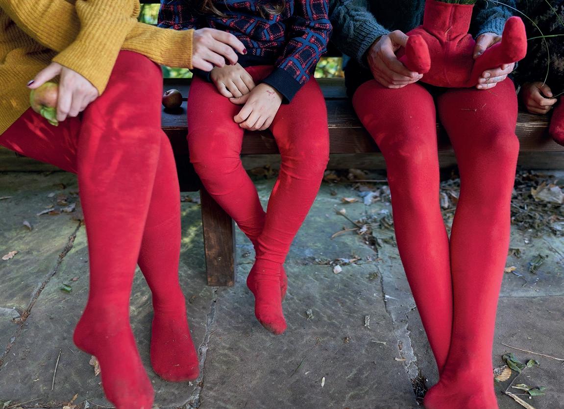 Wir laufen zurück zum Pfarrhaus. Meine Zehen sind nass und ein bisschen kalt. Aus meiner roten Strumpfhose will ich dennoch nur ungern raus. In ihr bin ich Sammlerin, Wanderin, Tänzerin, Künstlerin, Filmemacherin, ein Bruchstück von etwas Ganzem, Kind, Toni Roth. Ich behalte die rote Strumpfhose noch für einen kurzen Moment an.