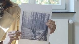 Sie geht durch die offene Tür in einen weiteren Raum, der ganz weiß und hell ist. Durch die großen Fenster kann man in den Garten schauen. Es sitzen Menschen an einem Tisch mit rotem Tuch vor einem großen Berg weißschwarzer Vierecke. Man kann sie in ein kleines Gerät stecken und wenn man durchschaut, sieht man plötzlich ein Foto. Dias heißen sie. Das Mädchen nimmt sich eines vom Tisch. Wenn sie da so liegen, sehen sie alle gleich aus.