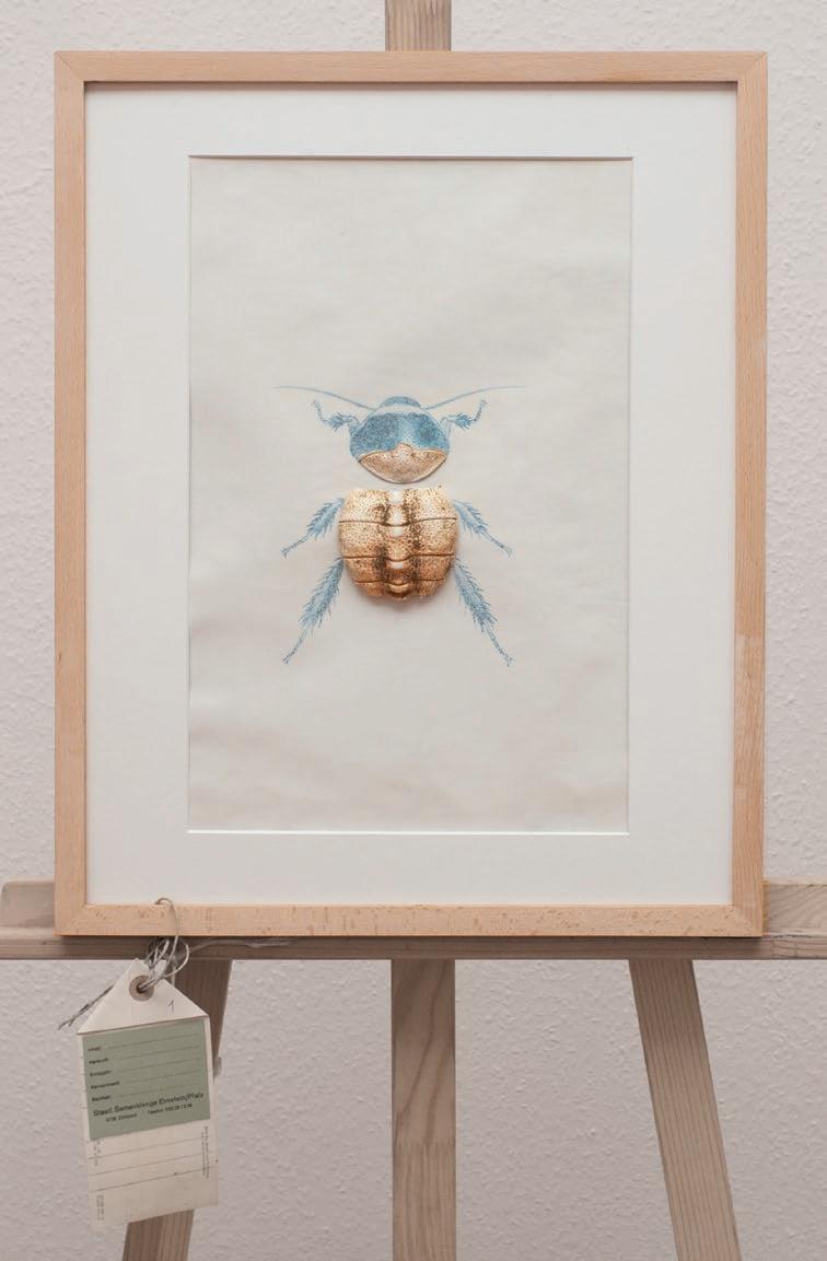 Krebspanzer, Nitrofrottage auf Papier, Hängeetikett der Samenklenge Elmstein