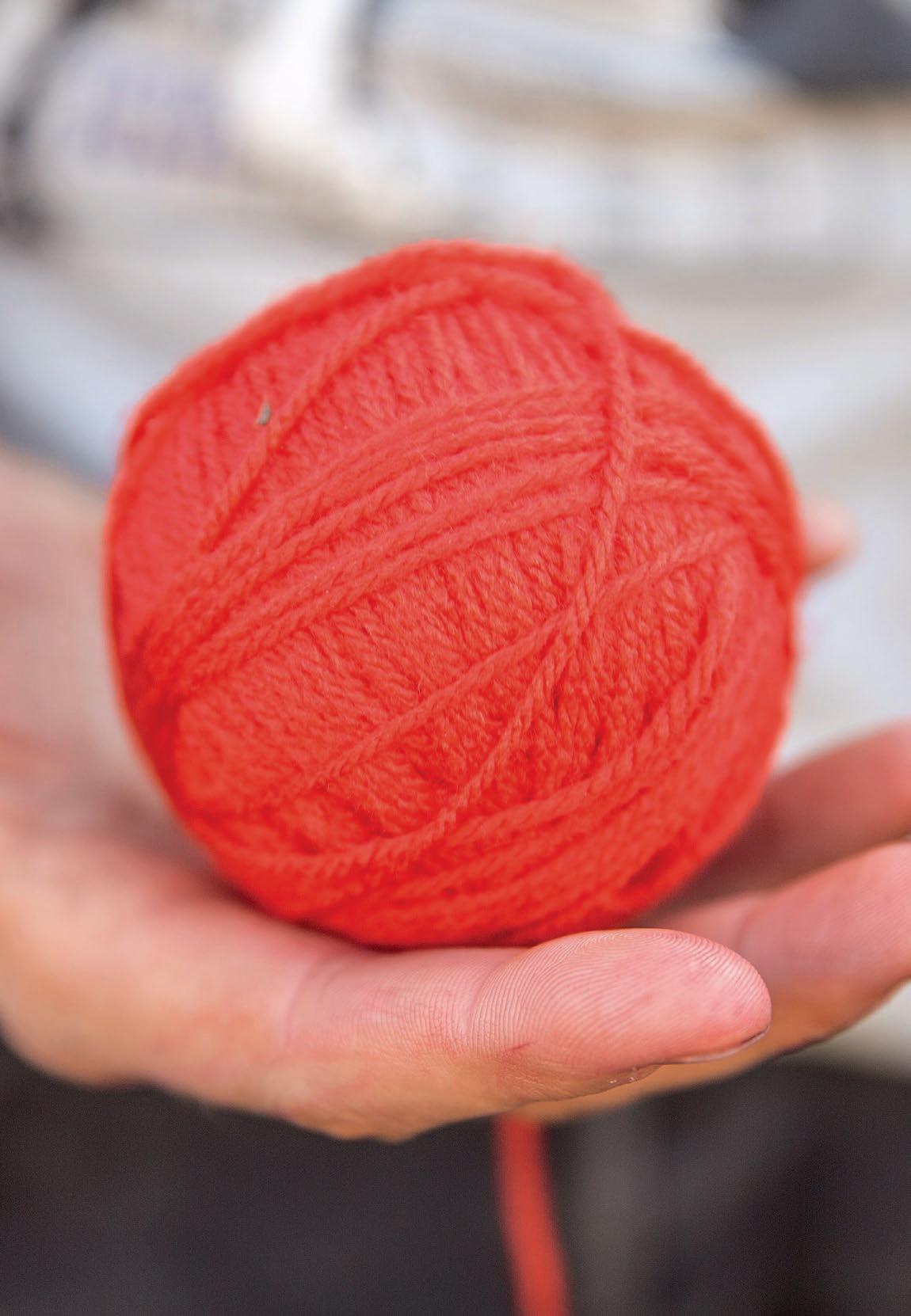 Sie folgt den Stimmen in einen Raum, in dem haufenweise rote Sitzsäcke, Teppiche und rote Wollknäuel verteilt sind. Auf einem Bildschirm erzählt eine Frau etwas – sie hat sie schon öfter in Elmstein gesehen. Sie sieht wichtig aus und spricht ernst. Sie erzählt von Toni und Paris. Der Ton aus dem Lautsprecher kommt gegen die aufgeregten Stimmen der anderen Kinder jedoch nicht an. Ein Junge begrüßt sie und fragt, ob sie Fingerstricken lernen will. Sie nickt, holt sich ein schönes Knäuel der dunkelroten Wolle und setzt sich neben ihn auf den Boden. Fingerstricken ist gar nicht so schwer.