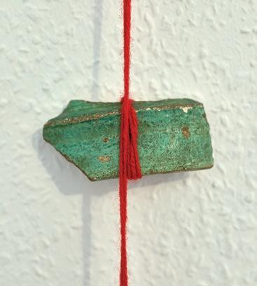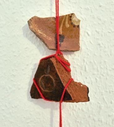 Keramikscherbe, Wollfaden Keramikscherbe, Wollfaden Keramikscherben, Wollfaden