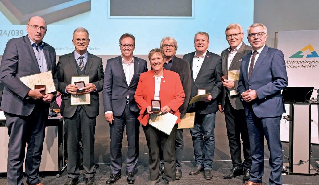 Die Ehrennadel, die vom Verband Region RheinNeckar gestiftet wird, würdigt besonderes Engagement, das über die Pflichten von Amt und Beruf hinausgeht. Mit der Verleihung an Dr. Fritz Brechtel, Dr. Jan Gradel, Heinrich Jöckel, Manfred Schwarz, Reinhold Niederhöfer, Ingeborg Volz und Manfred Zuber wird ihr langjähriges und prägendes Wirken für die Region gewürdigt.