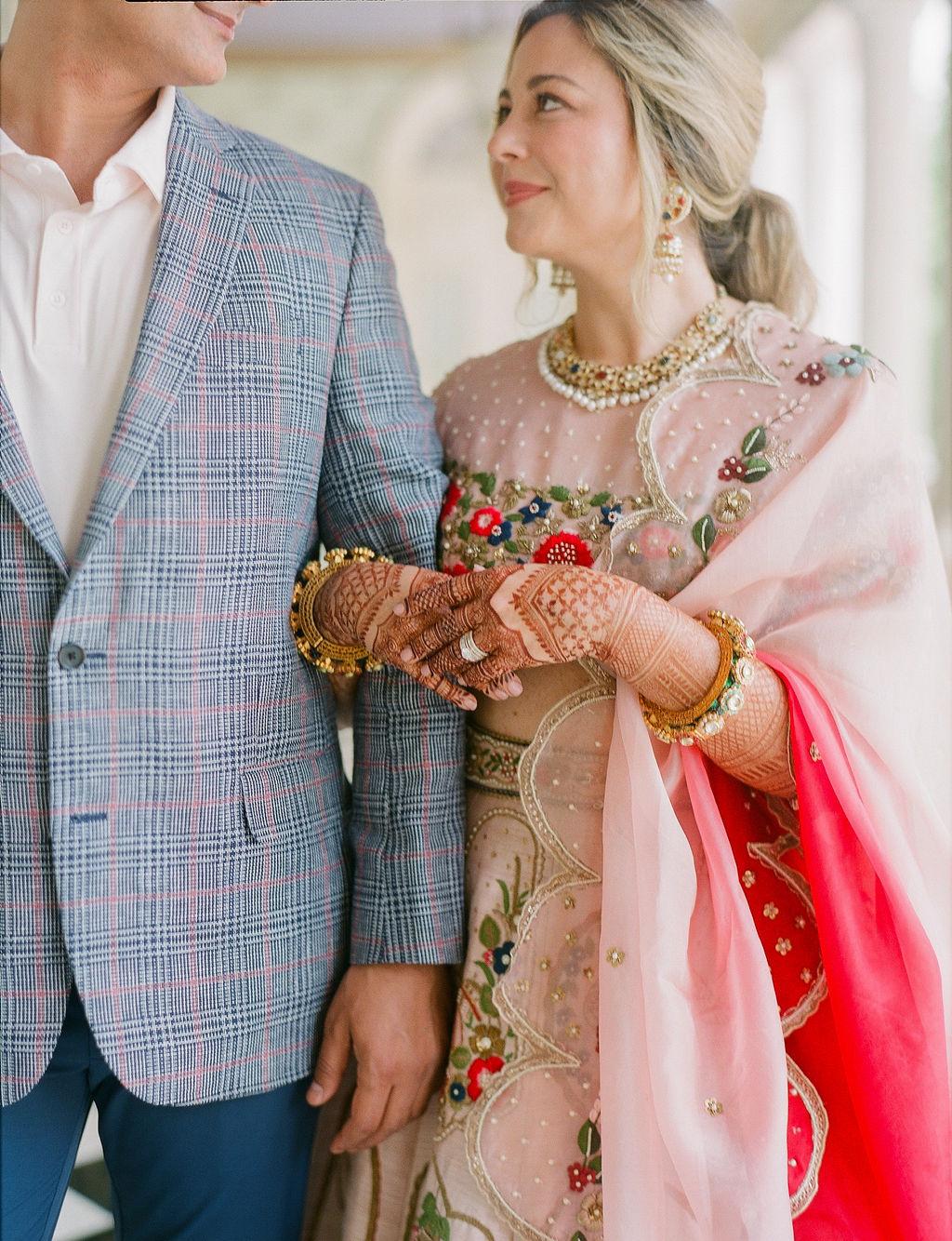 Bangles signify good fortune and prosperity, so brides wear stacks symmetrical bangles on each arm.