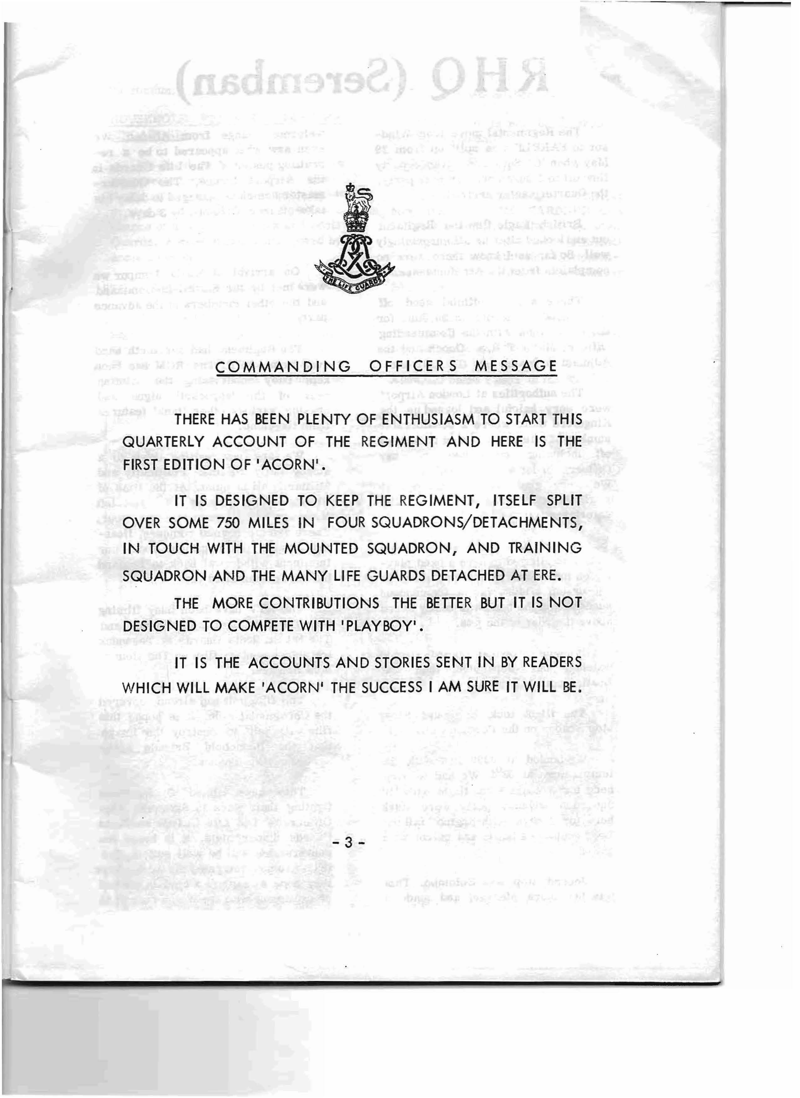 THERE HAS BEEN PLENTY OF ENTHUSIASM TO START THIS QUARTERLY ACCOUNT OF THE REGIMENT AND HERE IS THE FIRST EDITION OF I ACORN).