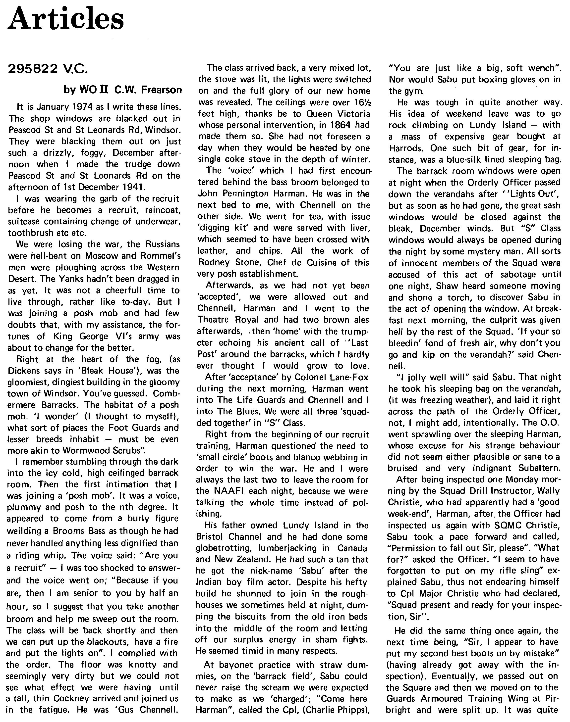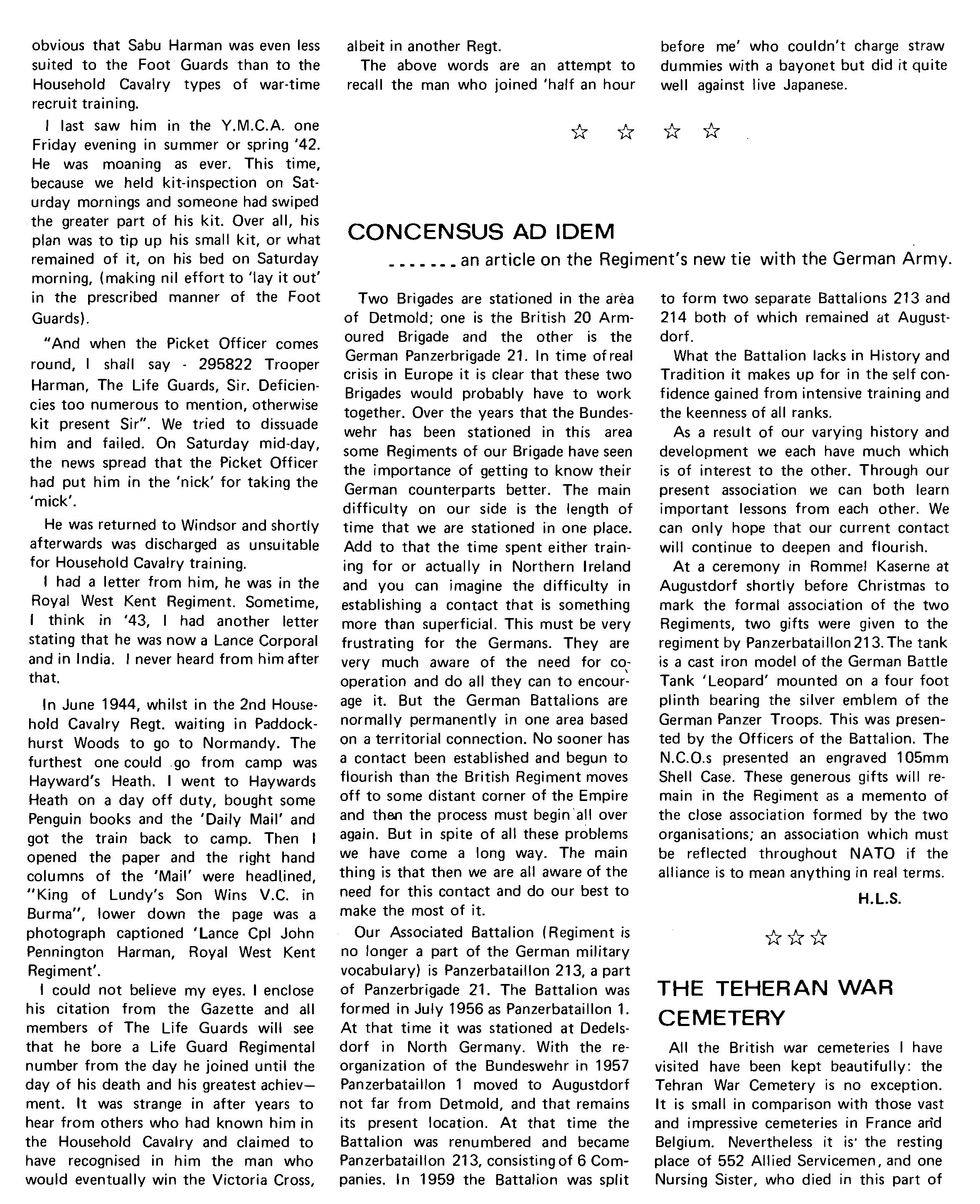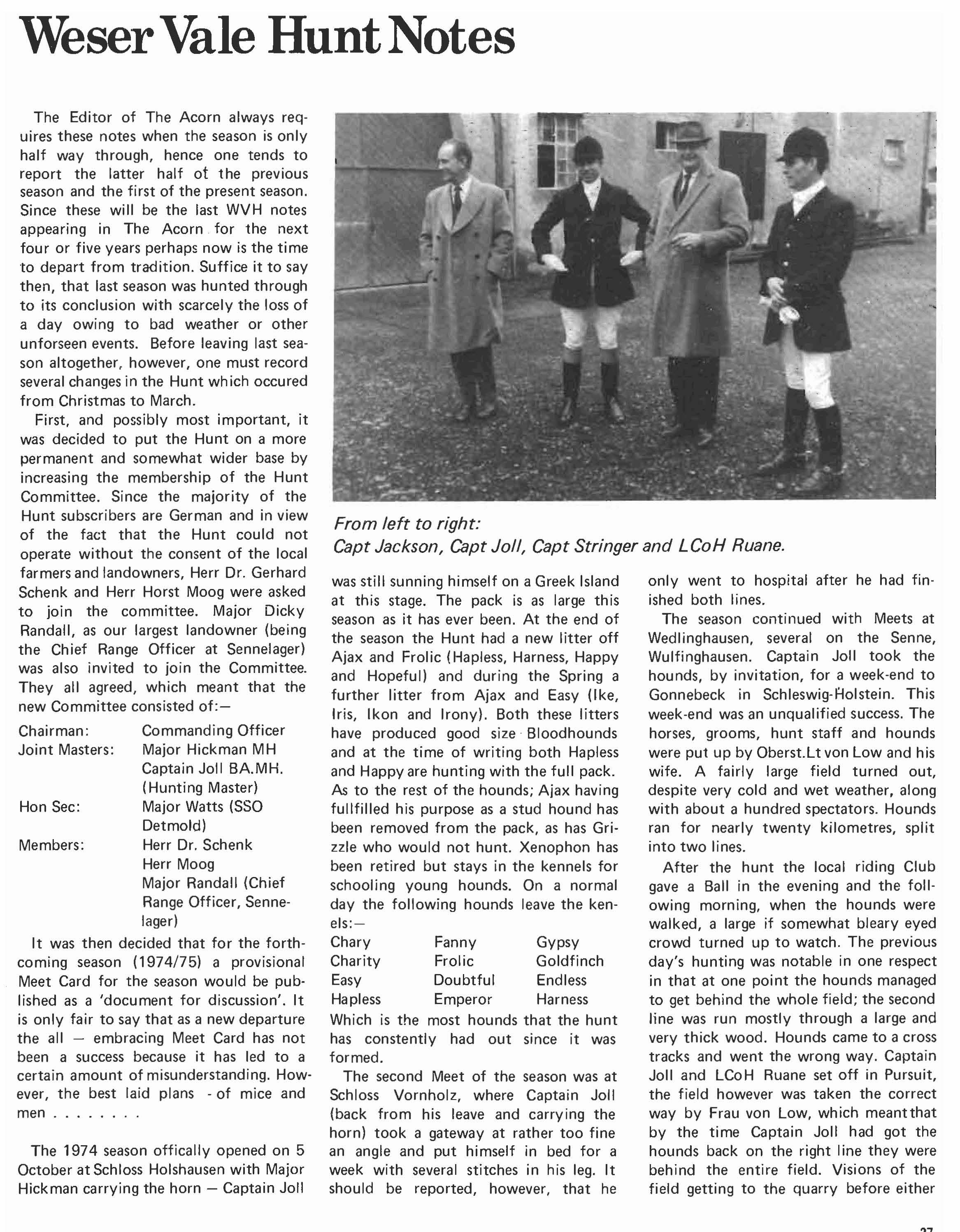 This edition of The Acorn, although it covers from March 1974 to March 1975 will not, in its content, really CCNer that period. This is for the simple reason that The Blue Light - the monthly magazine produced in Northern Ireland - has covered the most important aspect of the year's activity, that of the tour in Northern Ireland, and to repeat at length the material which has already been published in The Blue Light could only have the effect of making The Acorn both repetitive and boring. However, for those who did not have the opportunity to read the three editions of The Blue Light there is an article in the magazine which covers the period of the Regiment's tour in the Province. As for the rest of the year