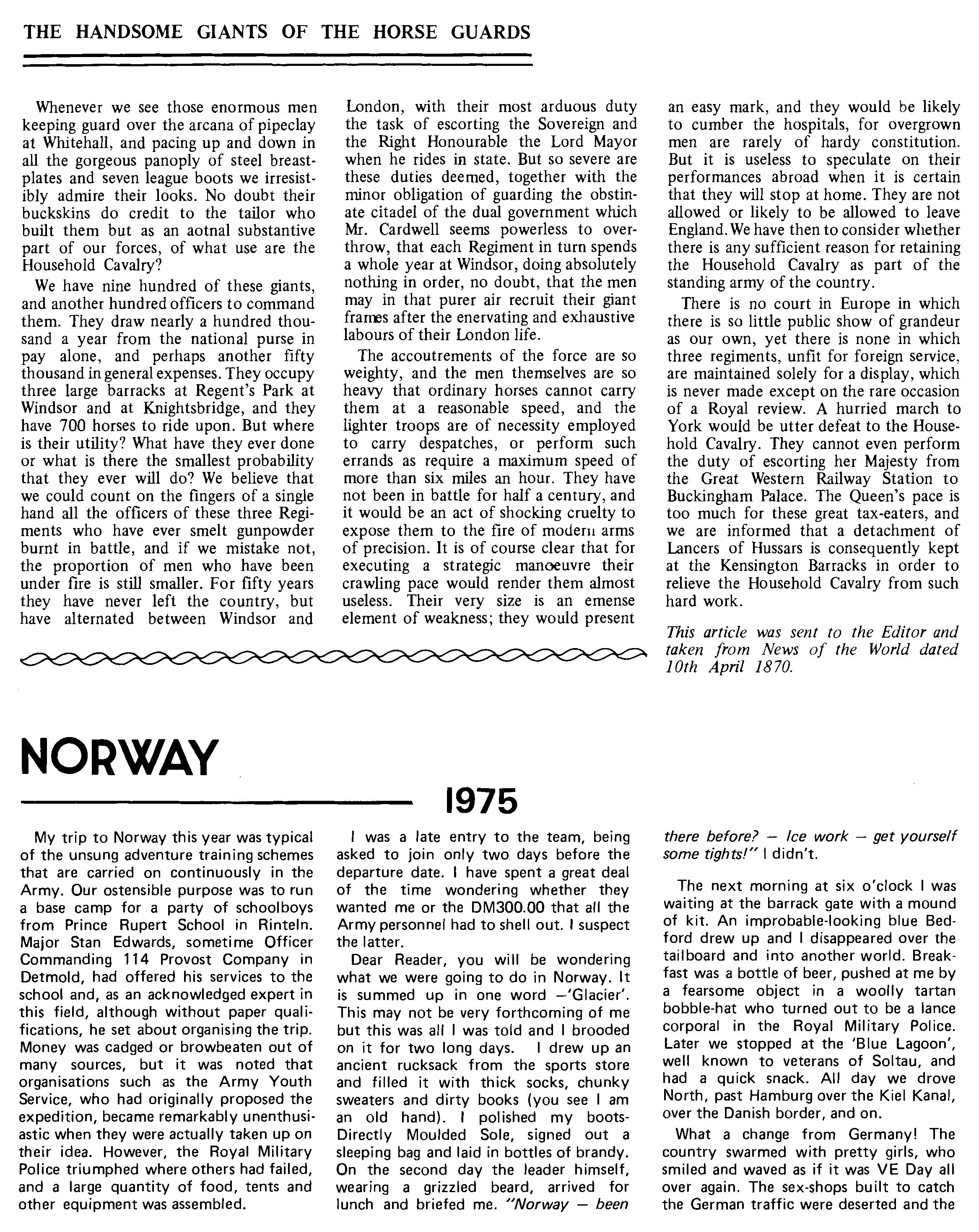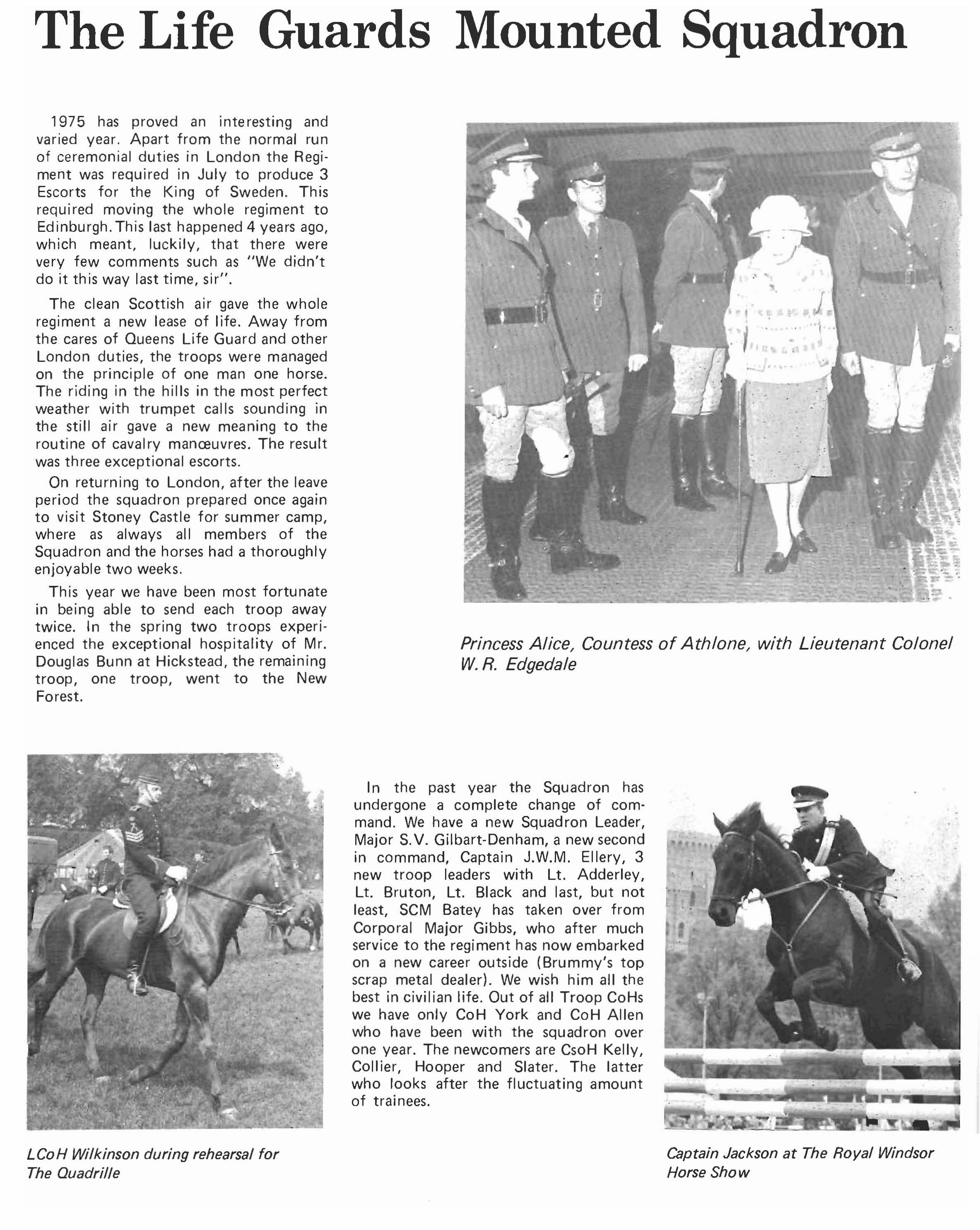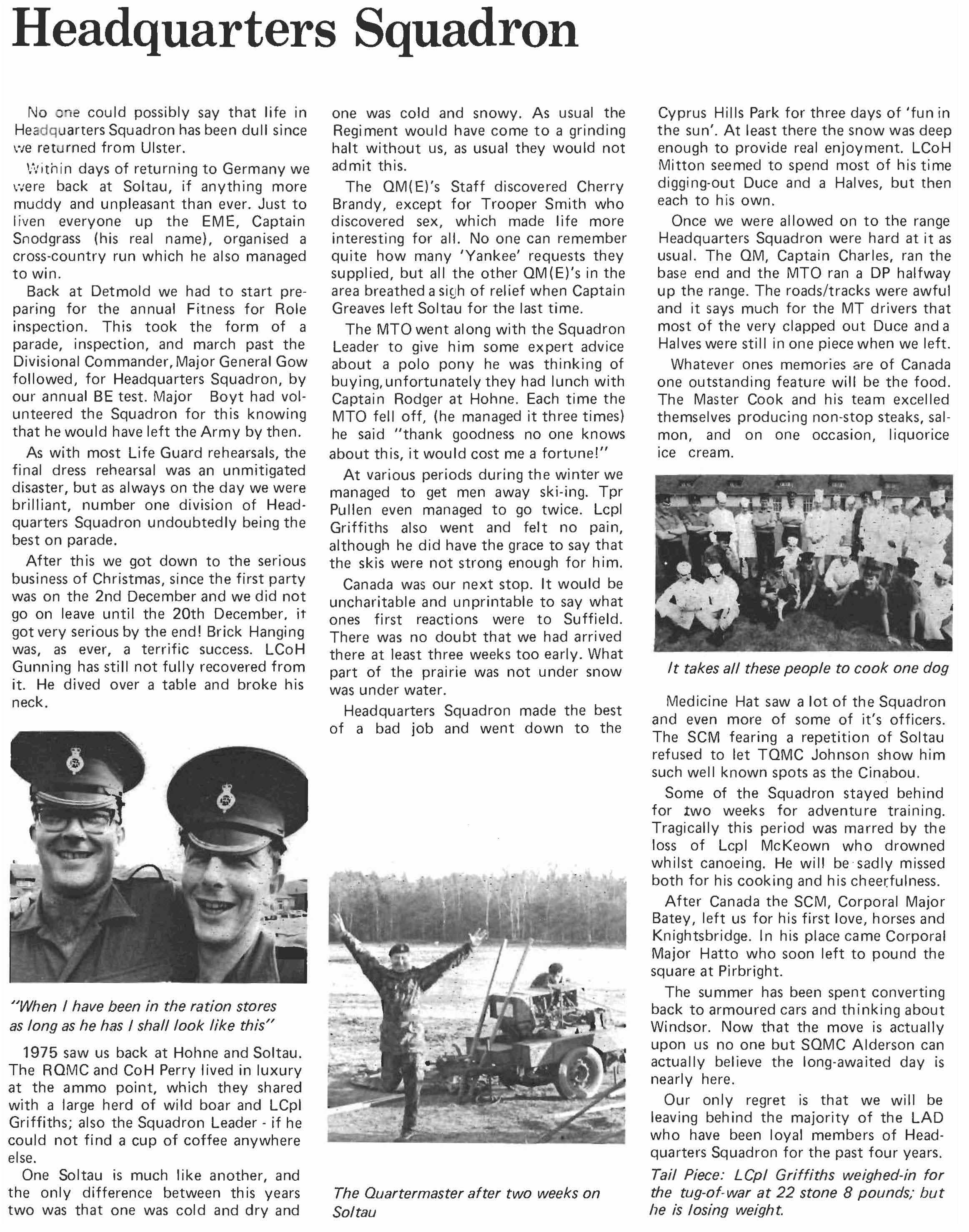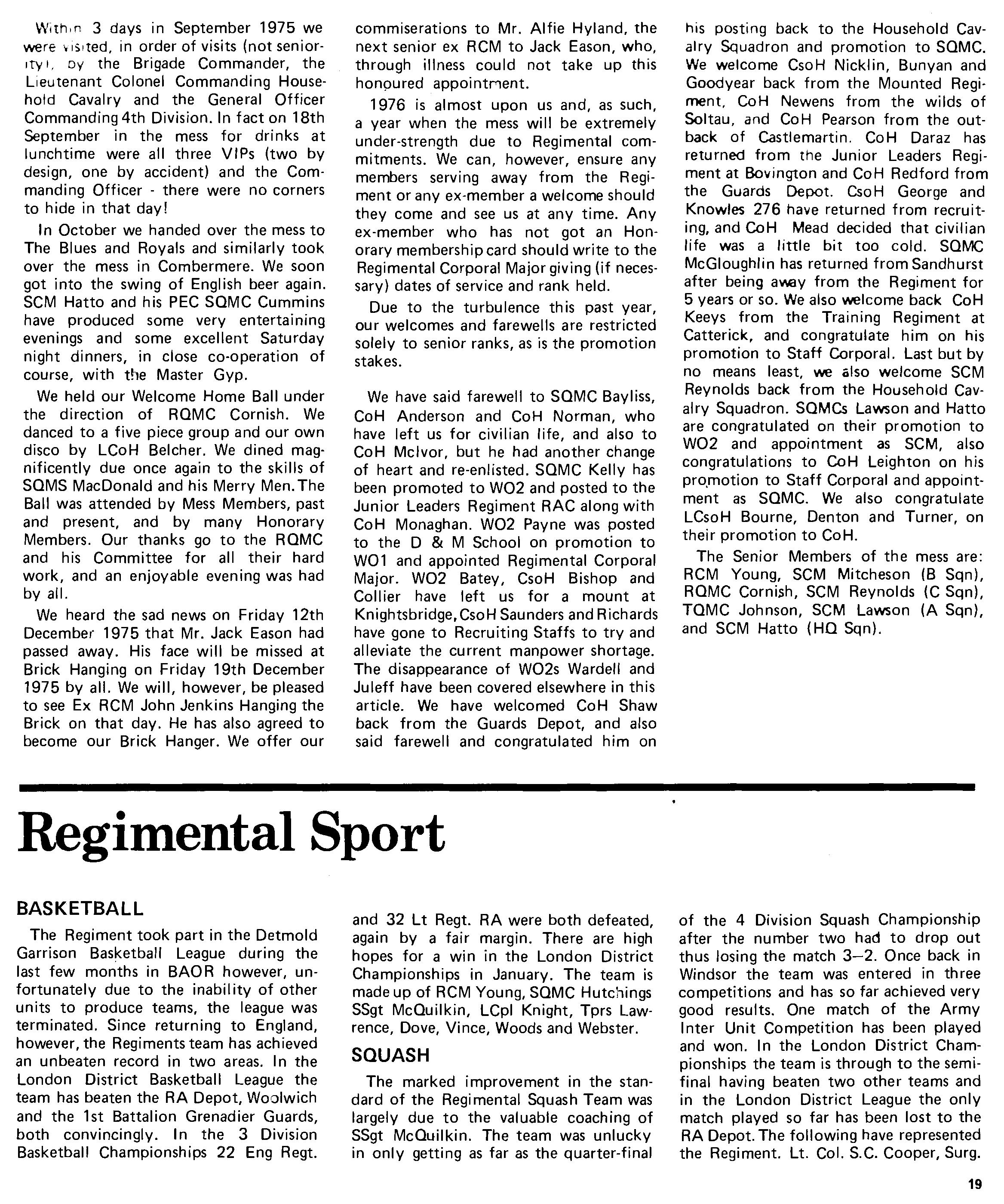 Now that we are back in Windsor, we are looking forward to seeing many old members of the Regi ment at Combermere. 1976 is to be another energetic year for us. B Squadron start by a tour in Ulster and leave just after Christmas for four months. C Squadron will be in Norway in February and March, and A Squadron leave for a six month tour in Cyprus also in March. However, some, if not all of us, will be around and hope people will visit us in the months to come.