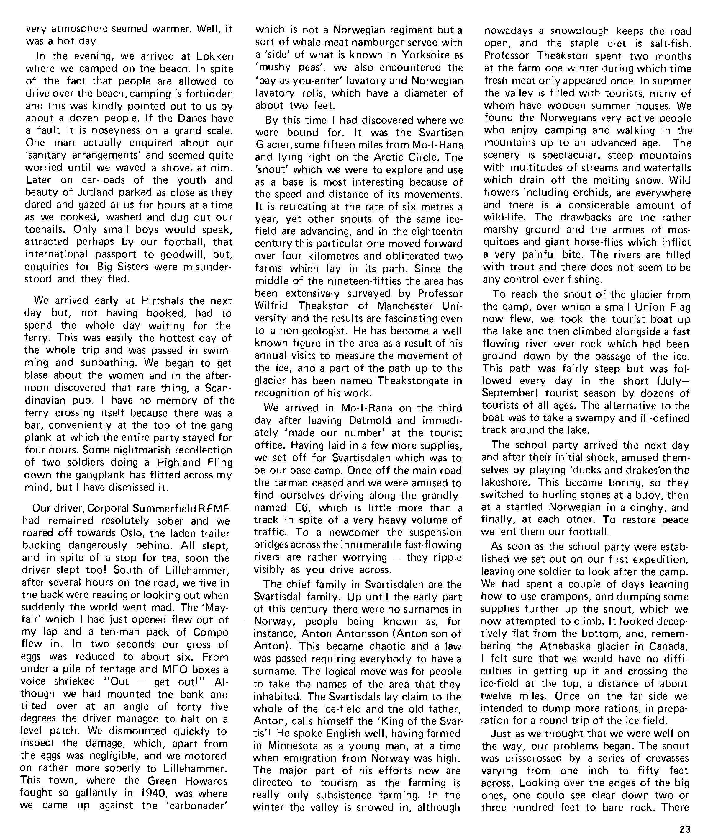 At various periods during the winter we managed to get men away ski-ing. Tpr Pullen even managed to go twice. Lcpl Griffiths also went and felt no pain, although he did have the grace to say that the skiswere not strong enough for him.