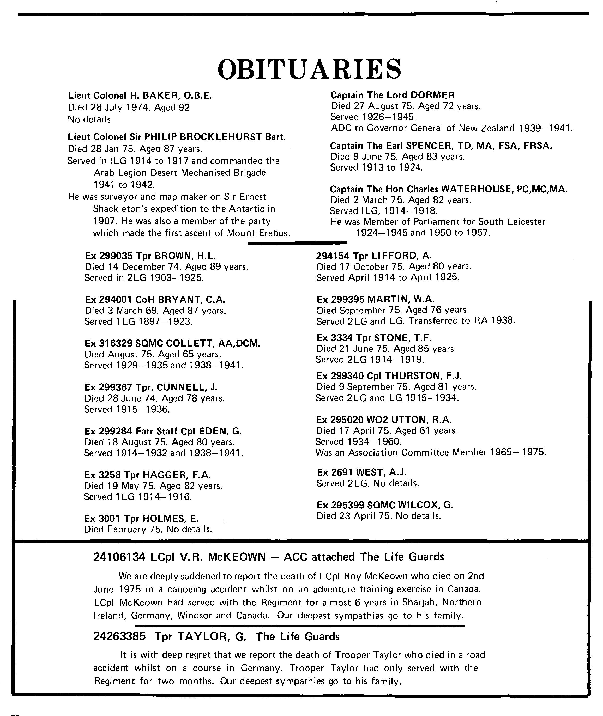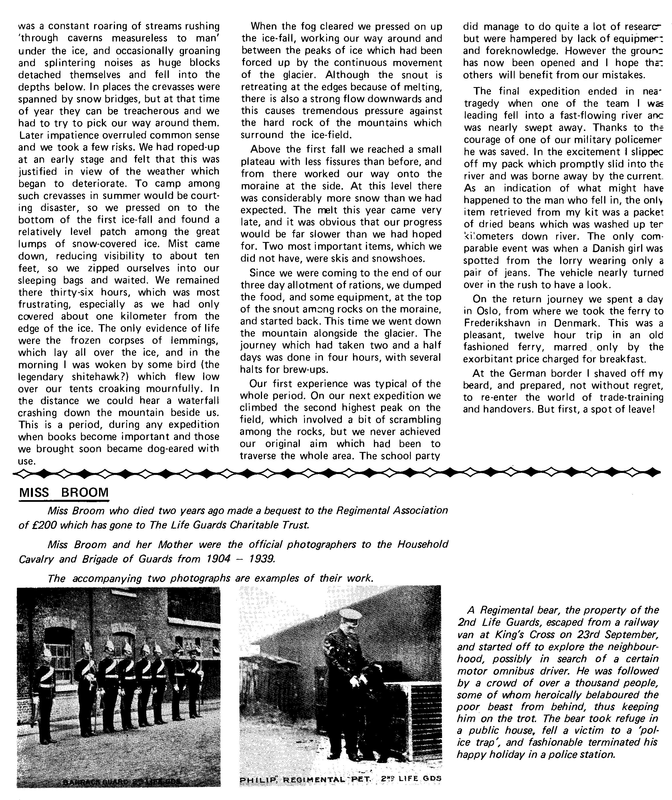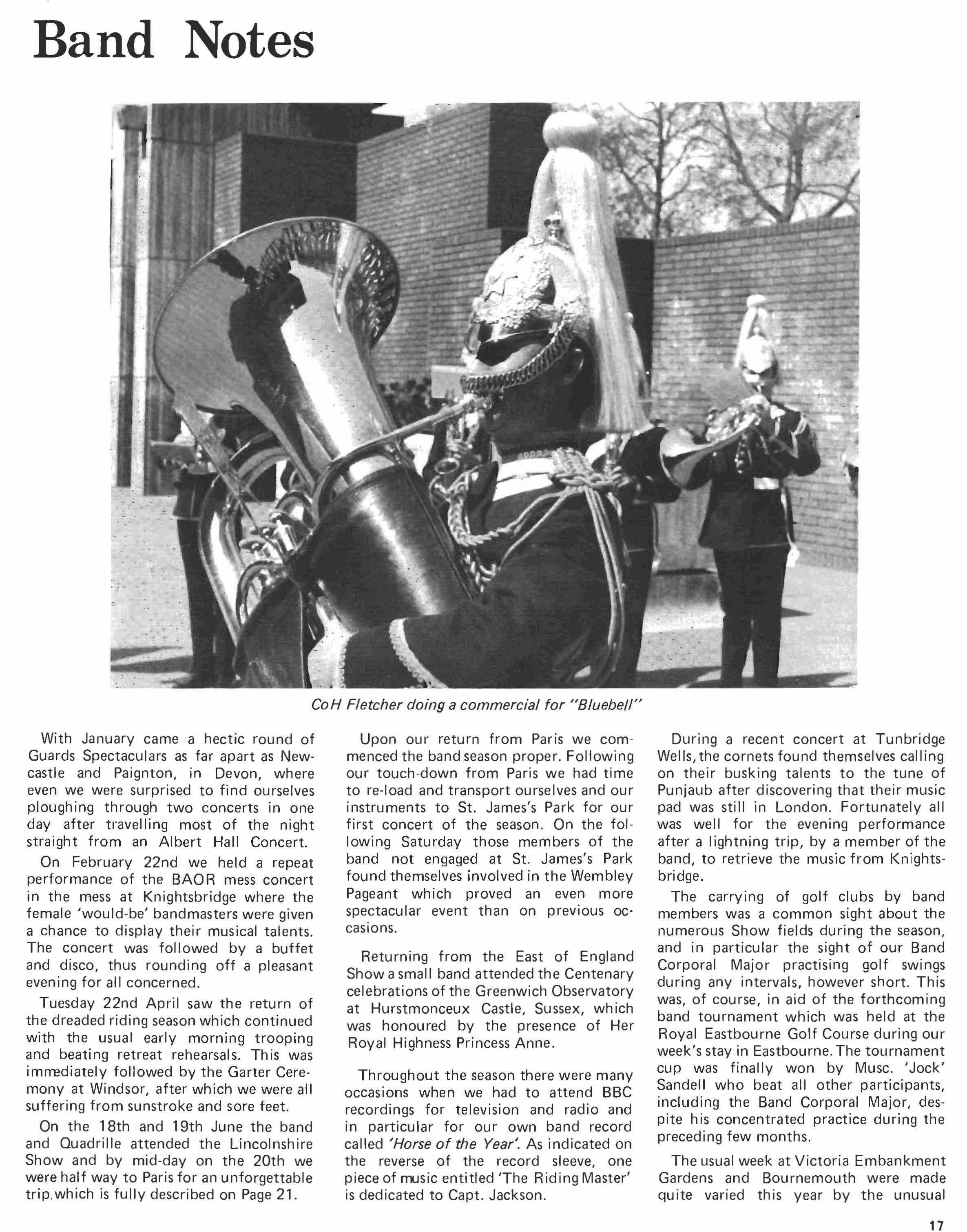 Tpr Lawless is to be congratulated on attaining aB pass on his B3 after only 2% weeks. LCoH Hale also deserves congratulations on his recent promotion as does Lcpl Bolsover, the latter having left us to become A Squadron clerk, replacing Lcpl Whetman who has transferred to the RMP. We have said farewell to LCoH Winter who has gone to try the patience of the Superintending Clerk at the Guards Depot, also to Tpr Evans who has gone to B Squadron to replace Lcpl Jepson who has returned to the fold.