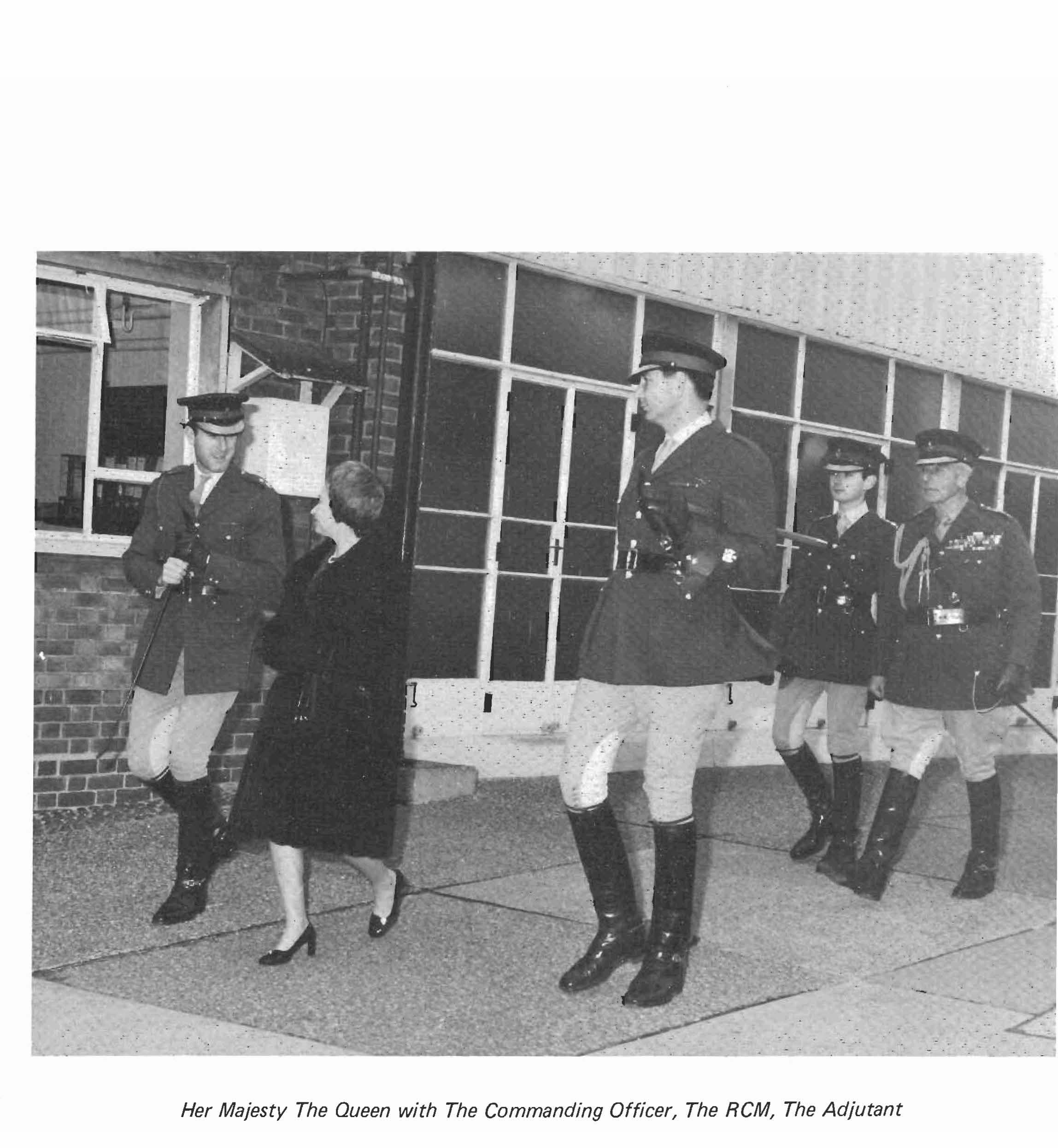 Her Majesty The Queen with The Commanding Officer, The RCM, The Adjutant
