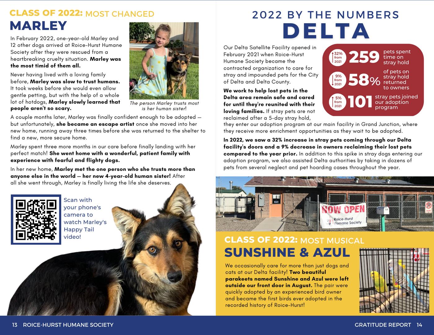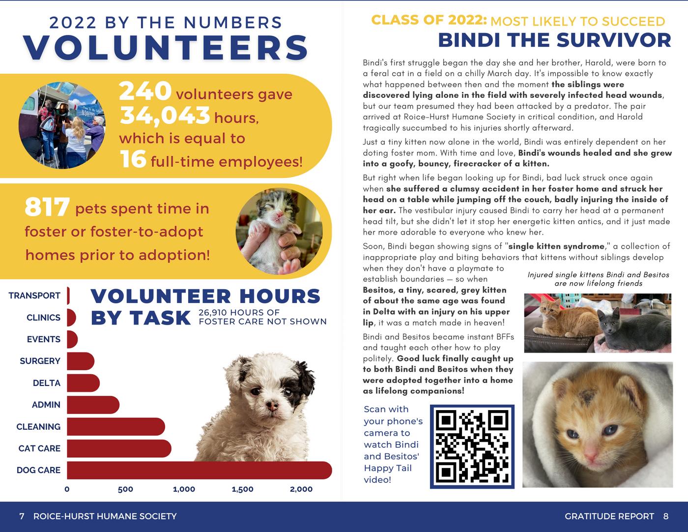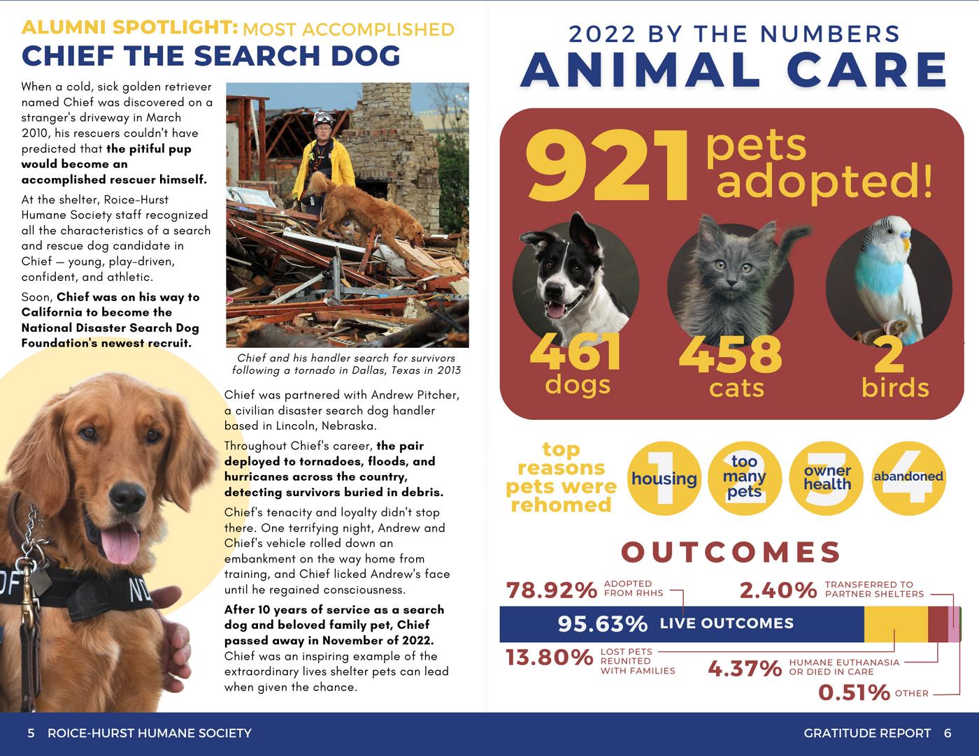 Thank you for helping us accomplish so much in 2022! In honor of our 60th year of service, this 2022 Gratitude Report doesn't just tell the stories of the present-day pets that came through our doors in 2022 – you'll also meet some of our most beloved and notable alumni that we've kept up with post-adoption.